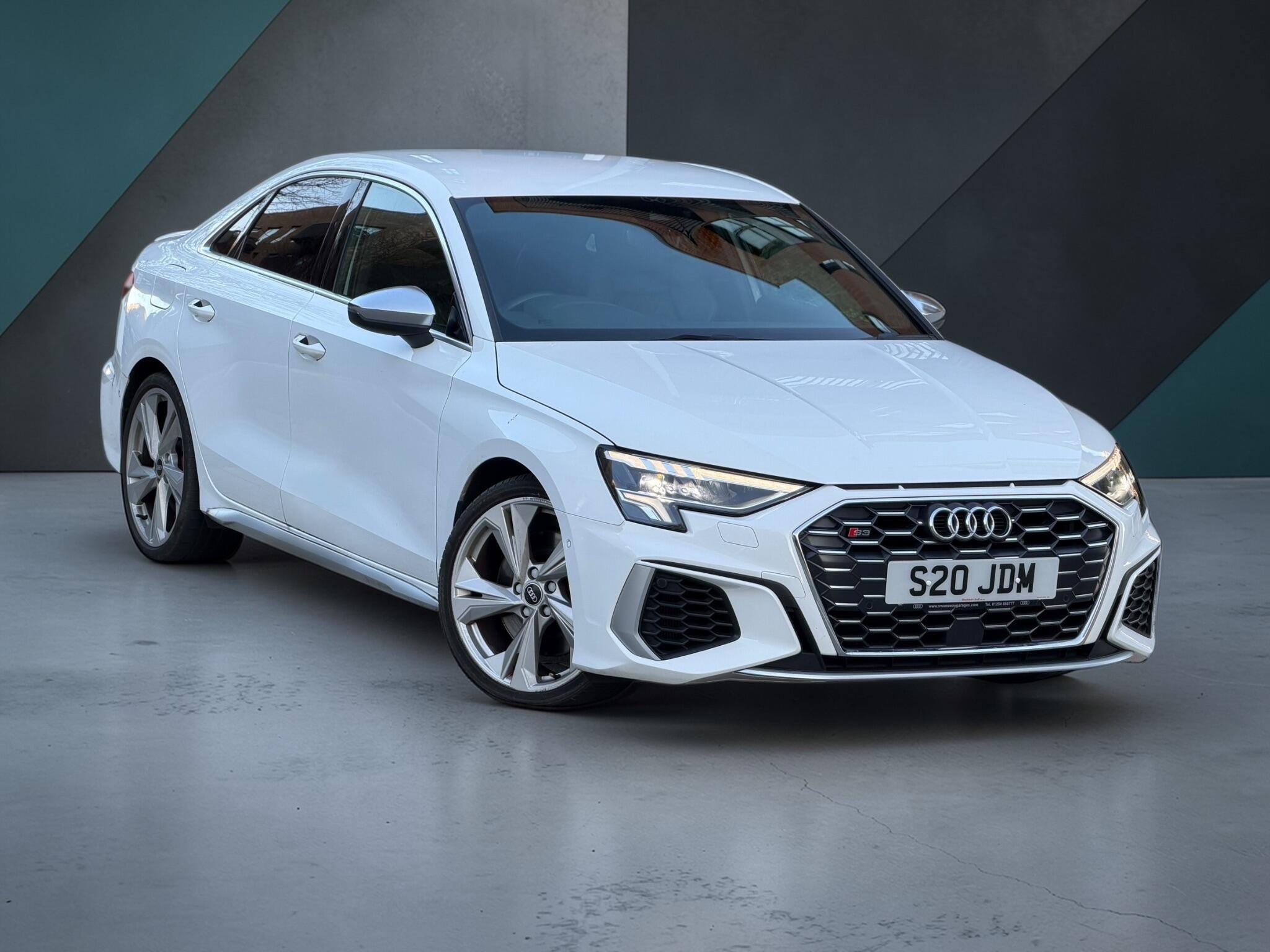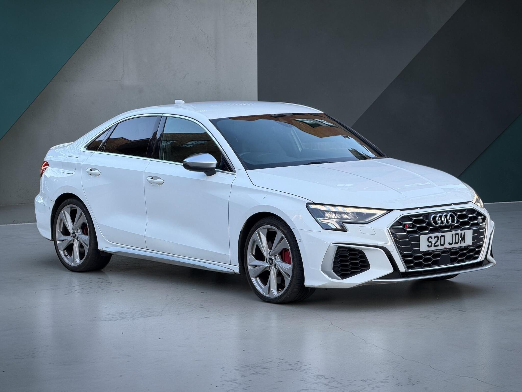 This 2021 Audi S3 TFSI boasts exceptionally low mileage for its age, having covered just 30,500 miles, and comes with a clear vehicle history check. This four wheel drive model is powered by a 2.0 litre Euro 6 petrol engine, offering impressive performance with a 0-62mph acceleration time of just 4.8 seconds. It features striking 19 inch alloy wheels in a titanium matt grey trapezoid design with a diamond cut finish, complemented by red brake calipers.